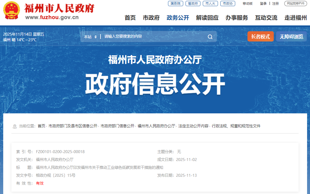 福州市人民政府办公厅印发《福州市关于推动工业绿色低碳生长若干步伐》的通知